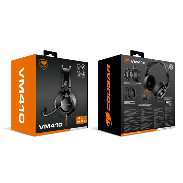 - The COUGAR VM410 headset is architected with a layered system of components to create the ideal sounds for gaming. It transmits entirely without any distortion in an incredibly small space to bring you the best of the best.
