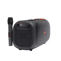 Take your party anywhere and sing everywhere. From beach parties to festivals, the JBL PartyBox On-The-Go lets you see, hear and feel the beat. Turn it up loud with 100 watts of powerful JBL Pro Sound, synched to a dazzling light show. Access your favorite tunes with Bluetooth, USB, AUX and TWS (True Wireless Stereo) connectivity, grab a friend and sing your hearts out with the JBL wireless mics, or use the instrument input to play along. With a bottle opener, padded shoulder strap, rechargeable battery and IPX4 splash-proof protection, the JBL PartyBox On-The-Go has everything you need to get the party started—and take it with you.