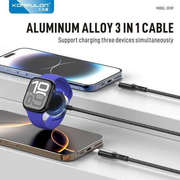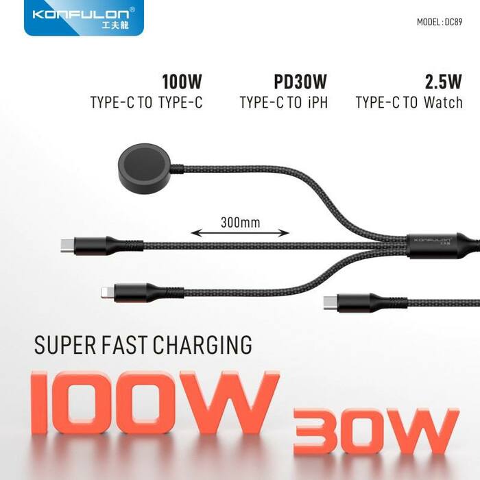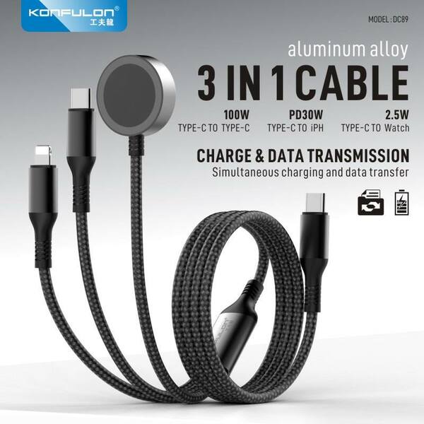 Konfulon ខ្សែរសាក 3 in 1សាកចេញ Type 100W iPhone 30W Watch2.5W ម៉ូឌែល DC89