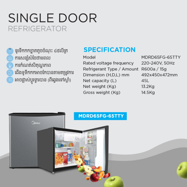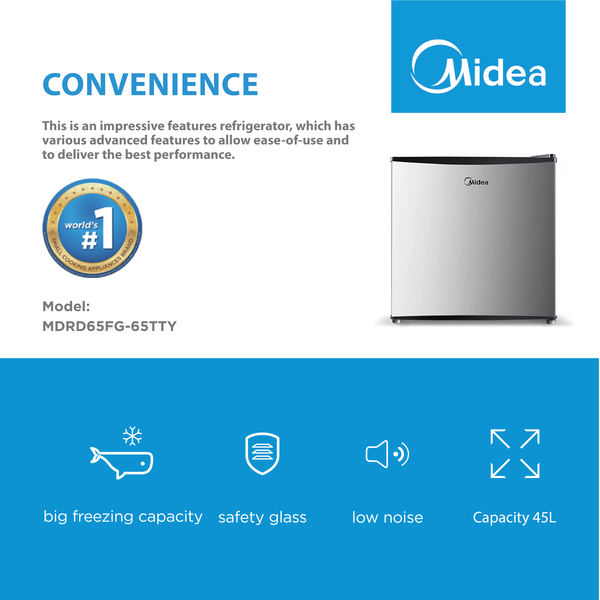 VMALL Midea Non-inverter,Mini Bar 43L Refrigerator MDRD65FG-65TTY