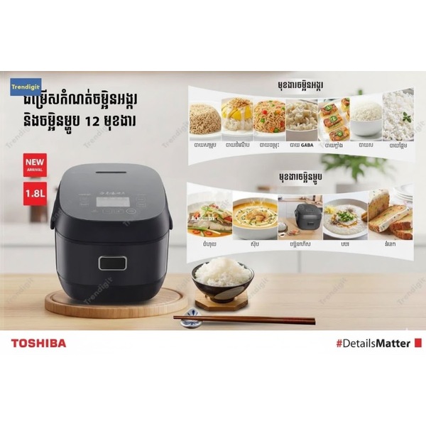 ជួយសន្សំទីធ្លាក្នុងផ្ទះបាយដោយមានការកំណត់មុខងារស្វ័យប្រវិត្ត 12ជម្រើសមុខងារក្នុងឆ្នាំងតែមួយសម្រាប់ការចម្អិនបាយ និងម្ហូបអាហារមានរសជាតិឈ្ងុយឆ្ងាញ់ដោយប្រើបច្ចេកវិទ្យា IH ផ្តល់កម្តៅបានសព្វពេញឆ្នាំង និងឆ្នាំងប្រភេទថ្នាំកូត Binchotanរបស់ប្រទេសជប៉ុនដាំបាយមិនស្អិតឆ្នាំង ងាយថែទាំ និងរក្សាសុខភាព។