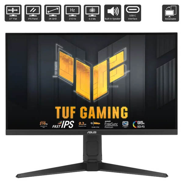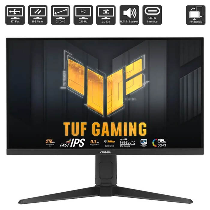 TUF GAMING Series 5 - VG27AQ5A-L Gaming Monitor – 27-inch, QHD (2560x1440), 210Hz (overclocked), Fast IPS, ELMB SYNC, 0.3ms GTG (minimum), Stereo Speakers, DisplayWidget Center, Game AI Technology, High/Low Adjustment